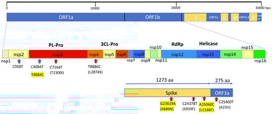 - Wang, S.; Xu, X.; Wei, C.; Li, S.; Zhao, J.; Zheng, Y.; Liu, X.; Zeng, X.; Yuan, W.; Peng, S. Molecular evolutionary characteristics of SARS-CoV-2 emerging in the United States. J. Med. Virol. 2022, 94, 310–317. [Google Scholar] [CrossRef] [PubMed]