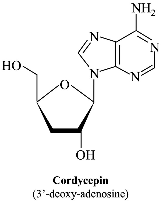 - Tuli, H.S.; Sharma, A.K.; Sandhu, S.S.; Kashyap, D. Cordycepin: A bioactive metabolite with therapeutic potential. Life Sci. 2013, 93, 863–869. [Google Scholar] [CrossRef] [PubMed]