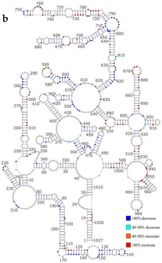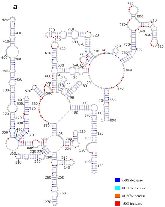 - Karabiber, F.; McGinnis, J.L.; Favorov, O.V.; Weeks, K.M. QuShape: Rapid, accurate, and best-practices quantification of nucleic acid probing information, resolved by capillary electrophoresis. RNA 2013, 19, 63–73. [Google Scholar] [CrossRef] [PubMed]