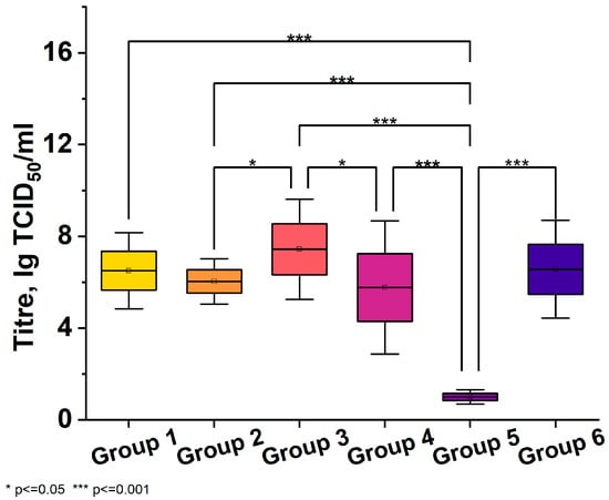 There were two independent series of experiments (the experiments flowchart is given in the Supplement—Figure S1). In the first series of experiments, the therapeutical activity of “Immeran” was studied by assessing the influence of the treatment on the virus titer in lung tissue.