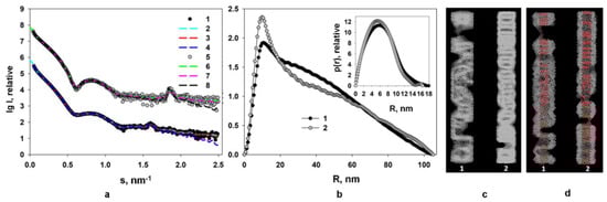 - Konarev, P.V.; Petoukhov, M.V.; Svergun, D.I. MASSHA—A Graphics System for Rigid-Body Modelling of Macromolecular Complexes against Solution Scattering Data. J. Appl. Crystallogr. 2001, 34, 527–532. [Google Scholar] [CrossRef]