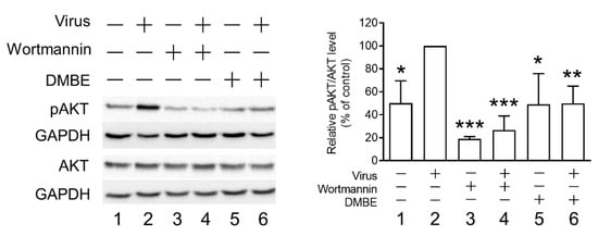 3.6. The Efficacy of DMBE against the Influenza Virus Is Linked to the Downregulation of the PI3K/AKT Signaling Pathway