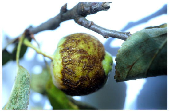 - Desvignes, J.C.; Boye, R.; Cornaggia, D.; Grasseau, N. Maladies à Virus des Arbres Fruitiers (Virus Diseases of Fruit Trees); CTIFL (Centre Technique Interprofessionnel des Fruits et Légumes): Paris, France, 1999; pp. 54–58. [Google Scholar]