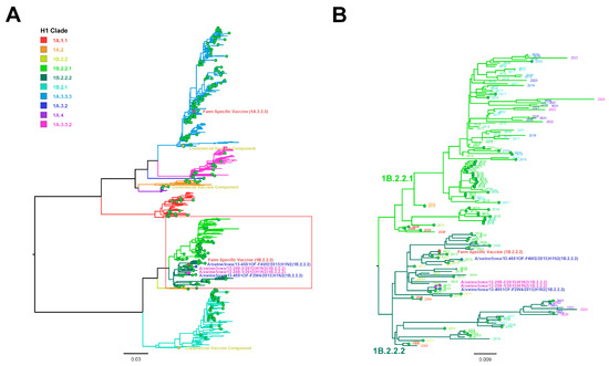 - Gao, S.; Anderson, T.K.; Walia, R.R.; Dorman, K.S.; Janas-Martindale, A.; Vincent, A.L. The genomic evolution of H1 influenza A viruses from swine detected in the United States between 2009 and 2016. J Gen Virol 2017, 98, 2001–2010. [Google Scholar] [CrossRef]