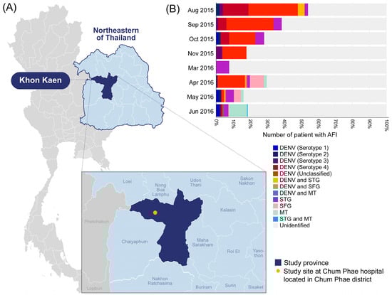 Jitvaropas, R.; Sawaswong, V.; Poovorawan, Y.; Auysawasdi, N.; Vuthitanachot, V.; Wongwairot, S.; Rodkvamtook, W.; Lindroth, E.; Payungporn, S.; Linsuwanon, P. Identification of Bacteria and Viruses Associated with Patients with Acute Febrile Illness in Khon Kaen Province, Thailand. Viruses 2024, 16, 630. https://doi.org/10.3390/v16040630