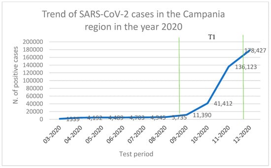 Trend of SARS-CoV-2 cases in the Campania region in the year 2020 (data obtained from ISS report).