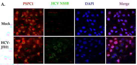 3.1. PSPC1 Is Relocalized to the Cytoplasm and Negatively Regulates HCV RNA Translation and Replication