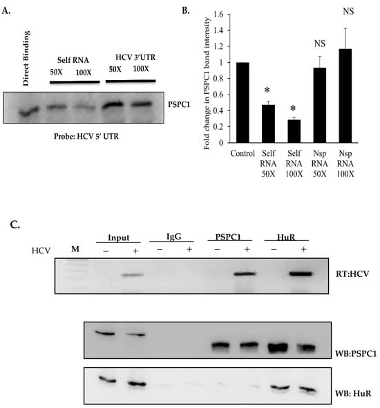 3.2. PSPC1 Specifically Interacts with HCV 5’UTR