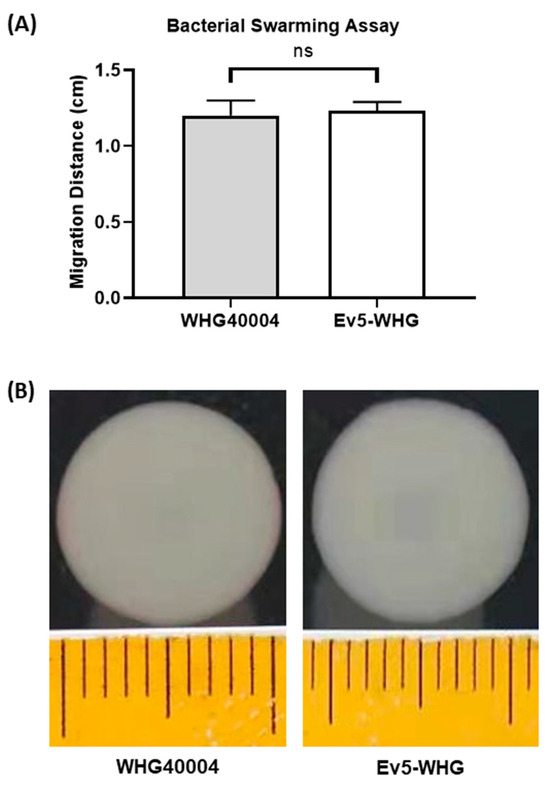 3.4. Ev5-WHG Displayed Similar Motility to Wildtype Strain