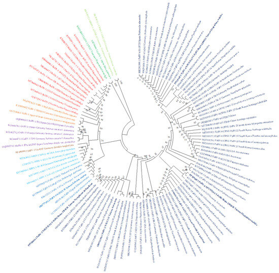 NCBI BLASTn search provided the homology analysis, which revealed that two of the Taiwan strains (NPUSTIAVT-PaBV/Brain-2208023 and NPUSTIAVT-PaBV/Brain-2302010) were PaBV-4, with both originating from Changzhi, Pingtung, and isolated from Diopsittaca nobilis (red-shouldered macaw), and one (NPUSTIAVT-PaBV/Brain-2301024) PaBV-2 was isolated from Nymphicus hollandicus (cockatiel) in Kangshan, Kaohsiung. The sequences were submitted and deposited in GenBank with accession numbers PP529446-PP529448.