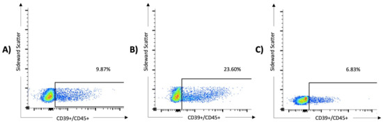 | CD39+CD45+ | AUC 0.71, p = 0.041 Criterion: >30.4, Youden index: 0.41 | OR 51.4, 95% CI 1.5 to 1763 p = 0.029 |