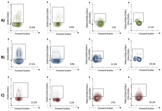 - Modabber, Z.; Shahbazi, M.; Akbari, R.; Bagherzadeh, M.; Firouzjahi, A.; Mohammadnia-Afrouzi, M. TIM-3 as a potential exhaustion marker in CD4+ T cells of COVID-19 patients. Immun. Inflamm. Dis. 2021, 9, 1707–1715. [Google Scholar] [CrossRef]