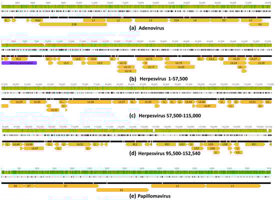 - Robinson, C.M.; Singh, G.; Lee, J.Y.; Dehghan, S.; Rajaiya, J.; Liu, E.B.; Yousuf, M.A.; Betensky, R.A.; Jones, M.S.; Dyer, D.W.; et al. Molecular Evolution of Human Adenoviruses. Sci. Rep. 2013, 3, 1812. [Google Scholar] [CrossRef]