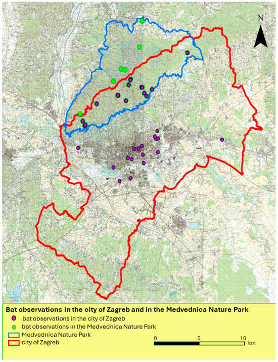 - Zrnčić, V.; Žvorc, P.; Hamidović, D. Monitoring Faune Šišmiša u Špilji Veternici na Području Parka Prirode Medvednica 2018. Godine [Monitoring of the Bat Fauna in the Veternica Cave in the Medvednica Nature Park in 2018]; Hrvatsko Biospeleološko Društvo: Zagreb, Croatia, 2019. [Google Scholar]