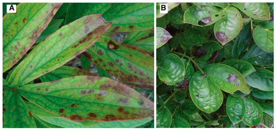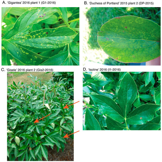 - Garfinkel, A.R.; Chastagner, G.A. Diseases of peonies. In Handbook of Florists’ Crops Diseases; McGovern, R.J., Elmer, W.H., Eds.; Springer International Publishing: Cham, Switzerland, 2018; pp. 663–692. [Google Scholar] [CrossRef]