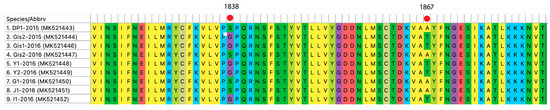 2.4. Diversity and Phylogenetic Relationships among Virus Isolates