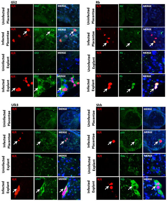 3.2. CMV-Induced Trophoblast Accumulation and Re-Localization of Rb, Ulk3, and Shh, but Not Gli2 Is Caused by Upregulation of Expression