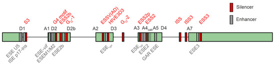 - Caputi, M.; Freund, M.; Kammler, S.; Asang, C.; Schaal, H. A bidirectional SF2/ASF- and SRp40-dependent splicing enhancer regulates human immunodeficiency virus type 1 rev, env, vpu, and nef gene expression. J. Virol. 2004, 78, 6517–6526. [Google Scholar] [CrossRef] [PubMed]