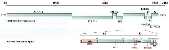 The S protein of coronaviruses serves as the receptor-binding protein and is a major target for inducing protective immunity. It shows significant genetic variations among strains due to immune pressure. Changes in tissue tropism among coronaviruses often correlate with mutations in the S protein. For instance, the deletion of the N-terminal domain of the S protein, and sometimes together with deletions in ORF3a and ORF3b of transmissible gastroenteritis virus (TGEV), an alphacoronavirus, shifted the viral major tropism from enteric to the respiratory tract, resulting in porcine respiratory coronavirus (PRCV) [14,15,16,17]. Therefore, a comprehensive investigation of BCoV S protein sequence variation and domain function is essential for the understanding of the virus adaptation and transmission mechanisms.
