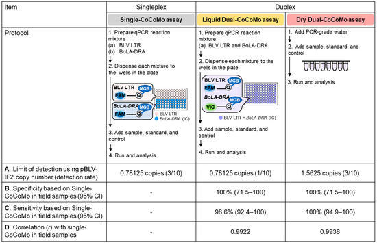 3.3. Validation of the Accuracy of the Liquid Dual-CoCoMo Assay and Dry Dual-CoCoMo Assay on BLV Provirus Detection