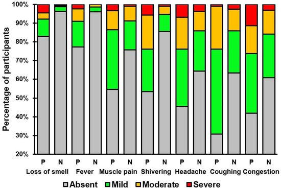 | COVID-19 Symptoms—Presence | COVID-19 Symptoms—Severity | |||||