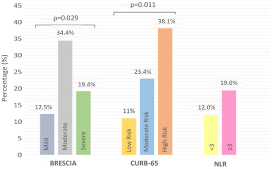 - Severity scales: Brescia-COVID Respiratory Severity Scale, CURB-65 and neutrophil-to-lymphocyte ratio (NLR);