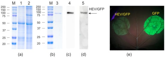 2.2. Expression of HEV/GFP and HEV/4M2e in Plants and Protein Purification