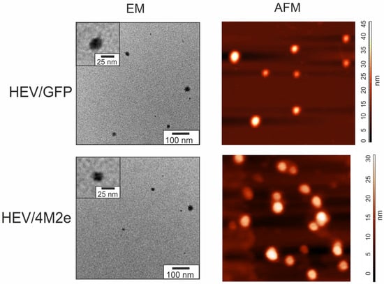 2.3. Plant-Produced HEV/GFP and HEV/4M2e Proteins Formed VLPs