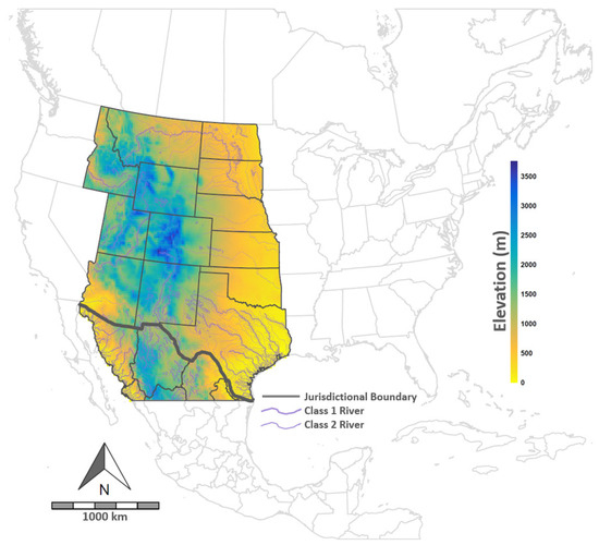 The project area included more than 4.25 million km2 in the western US and northern Mexico (Figure 1). Portions of the study area in the US included the states of Texas (TX), New Mexico (NM), Arizona (AZ), Oklahoma (OK), Kansas (KS), Colorado (CO), Utah (UT), Nebraska (NE), Wyoming (WY), Idaho (ID), Montana (MT), South Dakota (SD), and North Dakota (ND). In Mexico, the Sonora and Chihuahua states were included, as were the majority of Coahuila and minor portions of Sinaloa, Durango, Nuevo Leon, and Tamaulipas.