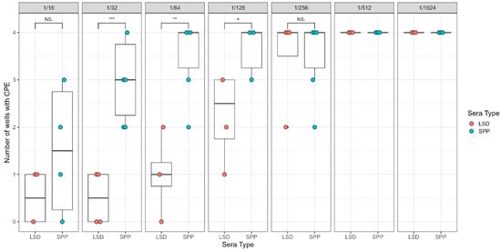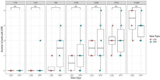 3.1. Fixed Sera Dilution VNT Using Heterologous and Homologous SPP, GTP, and LSD Sera