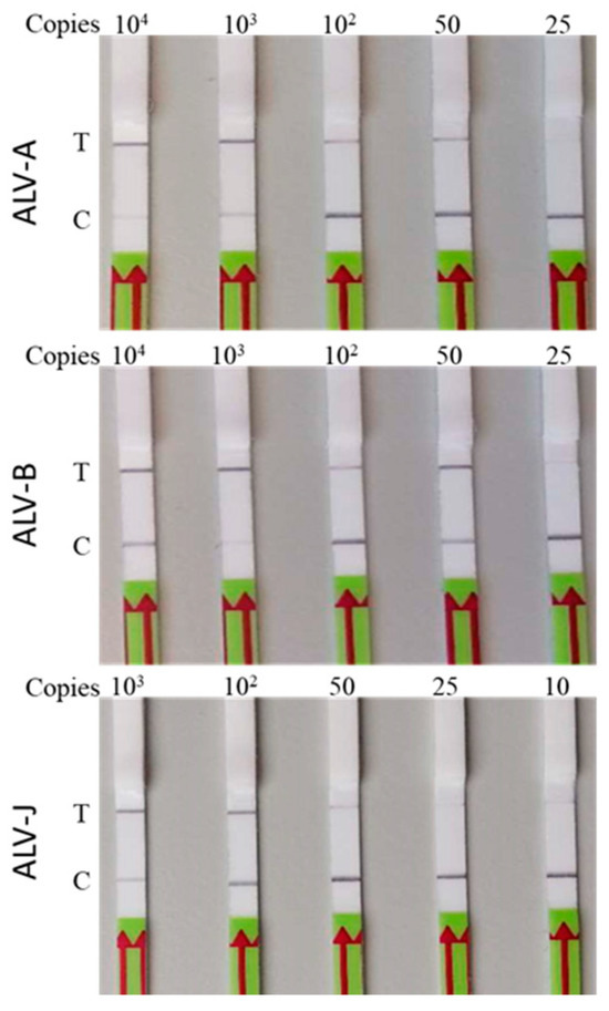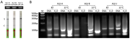 - Zhang, X.; Liao, M.; Jiao, P.; Luo, K.; Zhang, H.; Ren, T.; Zhang, G.; Xu, C.; Xin, C.; Cao, W. Development of a loop-mediated isothermal amplification assay for rapid detection of subgroup J avian leukosis virus. J. Clin. Microbiol. 2010, 48, 2116–2121. [Google Scholar] [CrossRef] [PubMed]