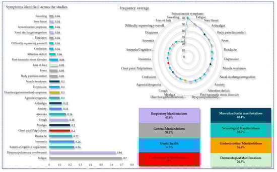 | [37] | 2021 | 1733 | Asia | 48% | 52% | Hospitalized 100% | 186 | 76% | Fatigue (63%), Muscle weakness (63%), Pain (27%), Dyspnea (26%), Insomnia (26%), Anxiety (23%), Depression (23%), Hair loss (22%) |