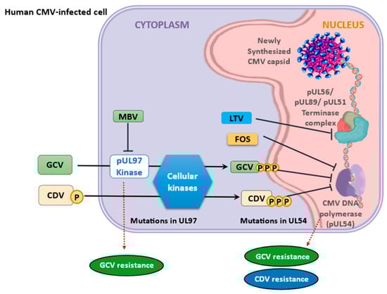 - Campos, A.B.; Ribeiro, J.; Boutolleau, D.; Sousa, H. Human cytomegalovirus antiviral drug resistance in hematopoietic stem cell transplantation: Current state of the art. Rev. Med. Virol. 2016, 26, 161–182. [Google Scholar] [CrossRef] [PubMed]