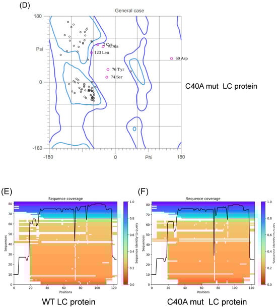 2.1. Prediction and Validation of the Tertiary Structure of the WT and C40A Mutant LC Proteins