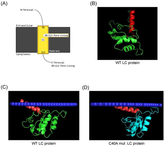 2.2. Prediction of the Transmembrane Domain of the WT and C40A Mutant LC Proteins
