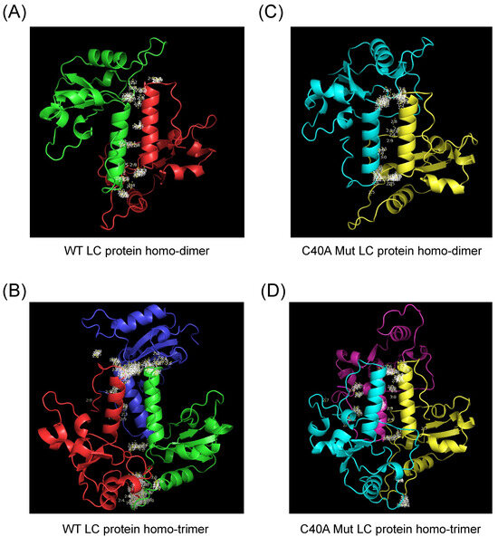 3.2. Putative Wild-Type and C40A Mutant LC Protein Tertiary Structures Possess Intramolecular Disulfide Bonds in Accordance with Experimental Data