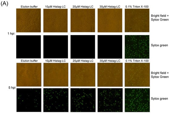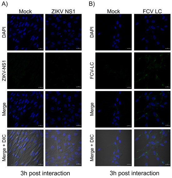 3.5. The Purified Histag-LC Protein from FCV Associates with the CrFK Cells’ Cytoplasmic Membrane through Exogenous Interaction