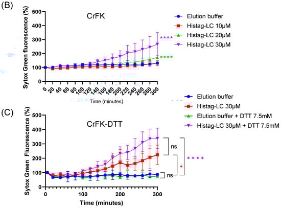2.6. In Vitro Exogenous Interaction of the LC Protein with the Plasmatic Membrane of CrFK Cells