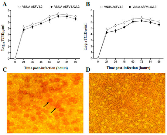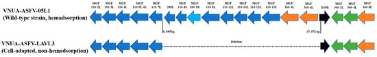 3.1. VNUA-ASFV-LAVL3 Loses Hemadsorption Activity during Adaptation in 3D4/21 Cells