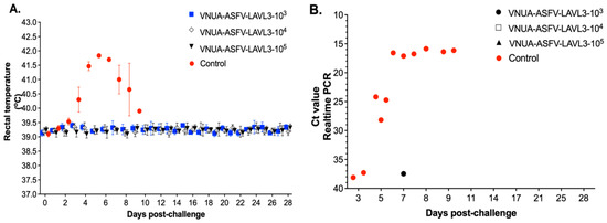 2.5. Safety, Efficacy, and Duration of Protection Testing of VNUA-ASFV-LAVL3 in Pigs