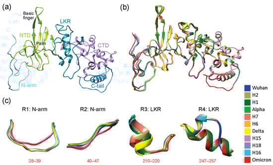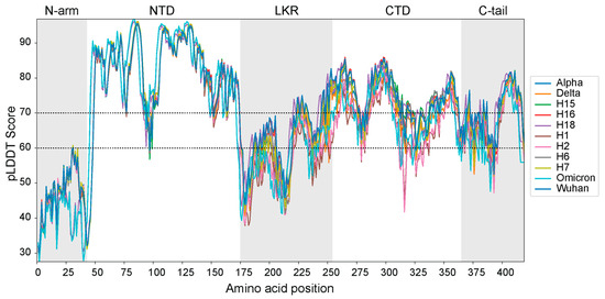 - Muradyan, N.; Arakelov, V.; Sargsyan, A.; Paronyan, A.; Arakelov, G.; Nazaryan, K. Impact of Mutations on the Stability of SARS-CoV-2 Nucleocapsid Protein Structure. Sci. Rep. 2024, 14, 5870. [Google Scholar] [CrossRef]