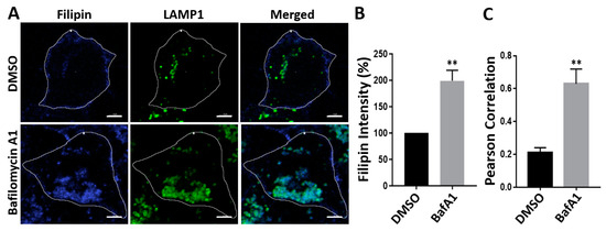 3.6. Bafilomycin A1 Causes an Accumulation of Cholesterol in Lysosomes