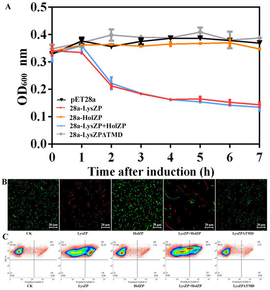 3.7. Expression of Endolysin LysZP Affects Membrane Integrity