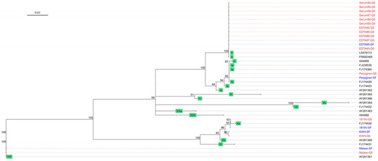 - Centro de Investigacion en Sanidad Animal (CISA-INIA) Procedure for the Genotyping of African Swine Fever Virus (ASFV) Isolates. Available online: https://asf-referencelab.info/asf-diagnosis/sops/ (accessed on 7 July 2022).