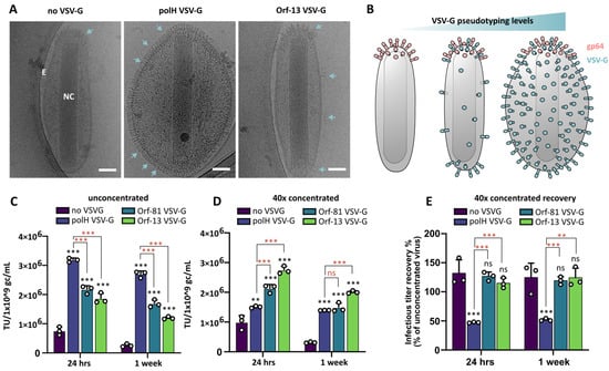 3.3. VSV-G Hyperexpression Affects Baculovirus Structure and Stability
