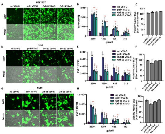 3.2. Transduction Efficiencies of New VSV-G-Pseudotyped BVs in Mammalian Cells