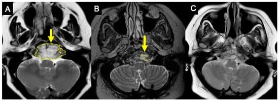 - Vellutini, E.D.A.S.; Stamm, A.E.C.; de Oliveira, M.F. Spontaneous Regression of a Clival chordoma: An Unusual Case Report. J. Neurol. Surg. A Cent. Eur. Neurosurg. 2021, 83, 388–390. [Google Scholar] [CrossRef]