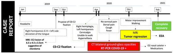 The occurrence of this cross-immunity between brachyury protein and SARS-CoV-2 suggested by Pastor et al. in 2020 may also have occurred in our case. In that case, immune response directed towards brachyury protein may have interacted with SARS-CoV-2 antigens, leading to a rapid clearance of the virus. But, in our case, perhaps this interaction happened in the opposite direction. We propose that the immune response directed towards SARS-CoV-2 could also have targeted brachyury-positive chordoma cells, optimizing the immunoediting process and tumor elimination.