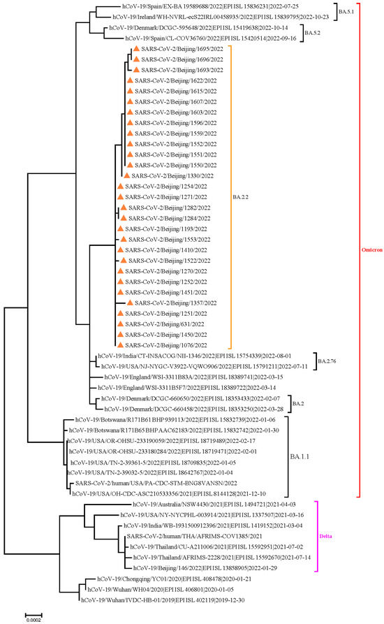 Results of phylogenetic tree analysis of whole genome sequencing all of the SARS-CoV-2 OmicronBA.2.2 variant.