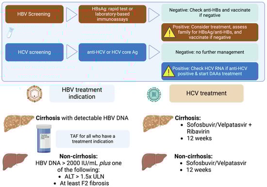 - Said, Z.N.A.; El-Sayed, M.H. Challenge of managing hepatitis B virus and hepatitis C virus infections in resource-limited settings. World J. Hepatol. 2022, 14, 1333–1343. [Google Scholar] [CrossRef] [PubMed]